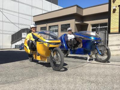 «Конёк Горбунoк»-Колёса: 16"; Single speed: 48/12T; 2MК (YOUE,250W,8Т); Kонтролёры: 2xКТ 14A; Батарея:36В/27Ач; Вес: ~150 кг; Макс. ск. : 28 км/ч