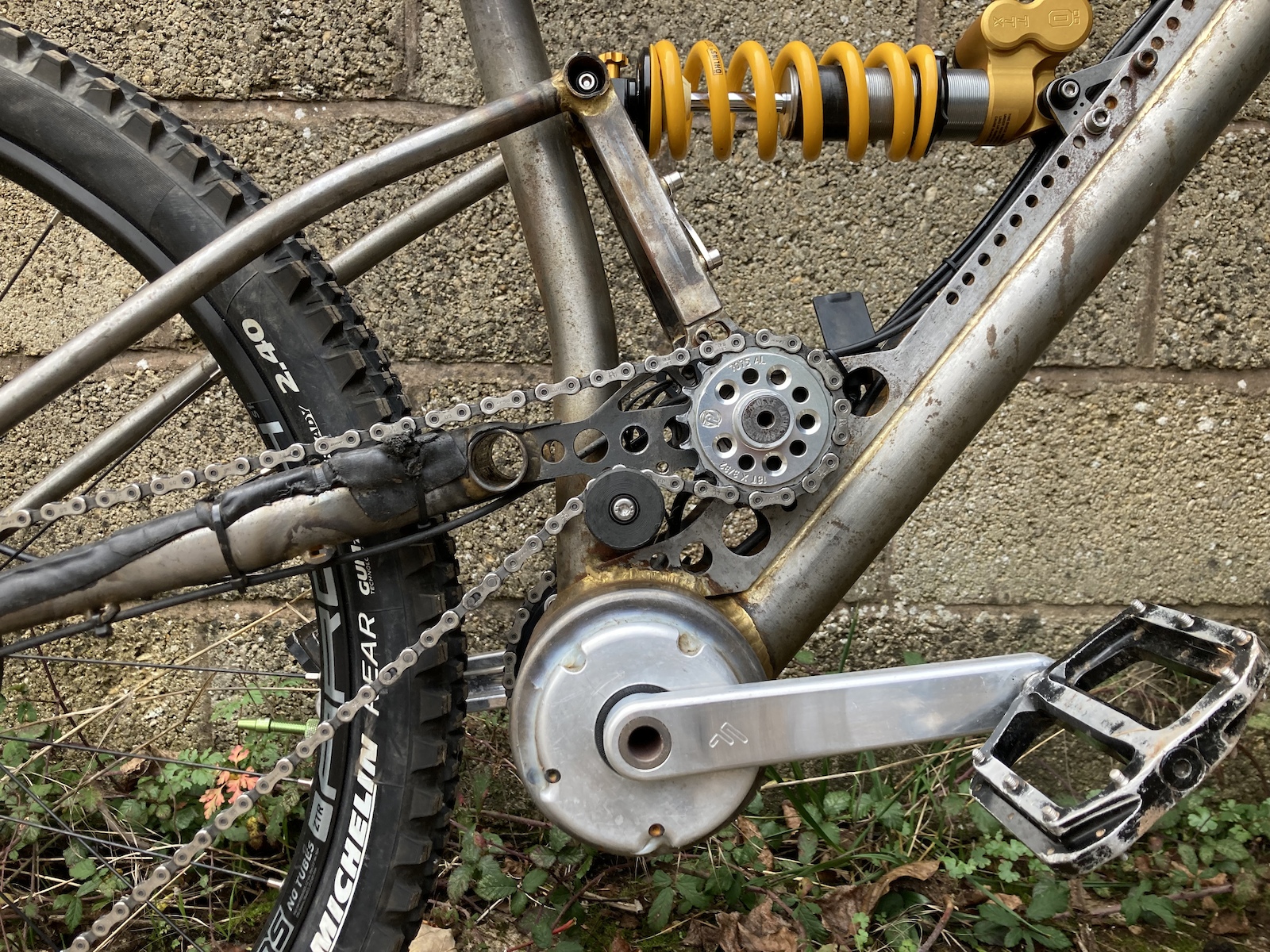 Задний треугольник выполнен из стали, вал для передачи усилия с ведущей звезды тоже никуда не делся.