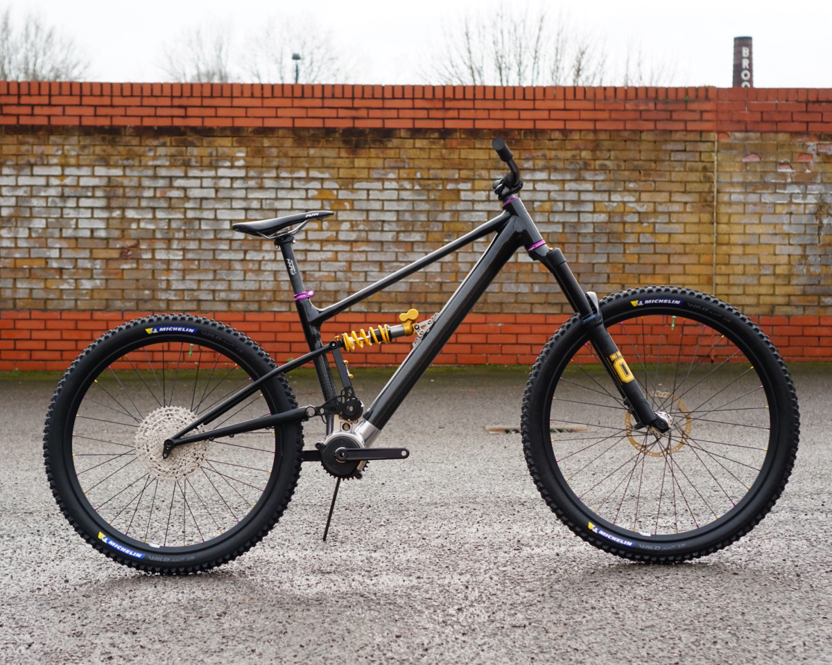 Дизайн карбоновой версии основывается на стальном прототипе, который использует довольно компактный мотор от другой британской конторы Freeflow Technologies. Его пиковая мощность находится на уровне 290Вт, а номинальная — 250Вт. Стандартные аккумуляторы идут в размерах на 252Втч и 387Втч, но можно слепить и кастомную батарею под заказ. Обычно аккумулятор прячется в нижней трубе, на стальном прототипе он был навесным (на фото отсутствует).