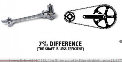 Нам нужно передать мощность педалей к заднему колесу. Цепи, являются наиболее распространенным способом, и если вы подписаны на мой канал, вы видели, что, по моему мнению, ремни идеально подходят для поездок на велосипеде на большие расстояния. Существуют и более причудливые способы, включая привод вала, гидравлический привод и даже струнный привод! В этом видео вы узнаете все причины, по которым валовые трансмиссии не добились успеха в мире велосипедов. Обязательно оставайтесь на месте до конца, потому что мы будем использовать наши знания о приводе вала, чтобы оценить интересную новую приводную трансмиссию. Но сначала, что такое велосипед с приводом от вала? Карданные валы обычно используются в автомобилестроении и промышленности, но чего вы, возможно, не знаете, так это того, что они используются на велосипедах уже более 125 лет. Вместо использования цепи и звездочки, установленных для вращения заднего колеса, два комплекта конических зубчатых колес передают энергию на заднее колесо через приводной вал. Вся система привода обычно размещается в алюминиевом корпусе, который служит опорой цепи с правой стороны вашей рамы. Производители велосипедов с приводом от вала, которые все еще существуют сегодня, обещают отсутствие открытых движущихся частей, засаленных или сломанных цепей и пропущенных передач - все это звучит довольно хорошо для меня. Итак, почему эти трансмиссии никогда не снимались? Причина №1. Трансмиссии с переключателем передач являются исключительными. Переключатели, несомненно, являются лучшей трансмиссией для большинства велосипедных применений. Они дешевы в производстве, легки, высокоэффективны и, благодаря более чем столетним инновациям, тоже работают очень хорошо. Переключатели также могут быть установлены практически на все велосипеды, вы можете легко найти запасные части, и вы можете найти кого-то, кто может отрегулировать их в большинстве городов. Поскольку вал не может быть соединен с переключателями передач, это основная причина, по которой велосипеды с приводом от вала не получили более широкого распространения. Но если вы цените возможность преодолевать огромные расстояния на своем велосипеде практически без технического обслуживания или возможность ездить в ужасных погодных условиях без регулировки передач, пропуска передач или необходимости очищать трансмиссию от мусора - вот где сияют системы коробки передач, а привод вала может быть сопряжен с внутренним ступица шестерни. Итак, для остальной части этого сравнения мы будем исходить из предположения, что кто-то уже хочет велосипед с коробкой передач с низким уровнем обслуживания и выбирает между использованием цепей, ремней и валов. Причина №2. Сниженная эффективность привода. Валовая трансмиссия имеет более низкую эффективность, чем цепная или ременная. Наибольшие потери эффективности происходят просто из-за изменения направления вращения, сначала на коленчатом валу, а затем снова на задней ступице. У нас не так много данных об эффективности, доступных здесь, но в 1983 году Йозеф Келлер сравнил неуказанный привод на валу с односкоростной цепью и обнаружил разницу в эффективности привода на валу на 7%. Мощность педалирования составляла от 50 до 200 Вт. Friction facts протестировали односкоростную цепь на эффективность около 99% при 150 Вт, а рем