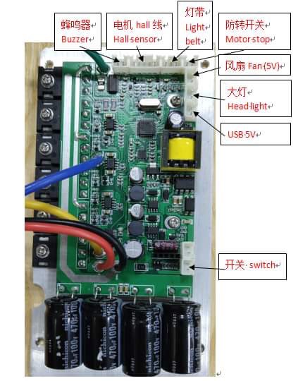 Колесо попало ко мне в "своеобразном" состоянии. Путем изысканий я понял назначение некоторых разъемов. Поправьте, если я ошибся :)