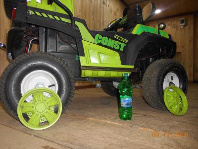 Переделанная китайская машина практически безаварийно прошла дорожные испытания в прошлом сезоне и теперь мой маленький водитель с нетерпением ждет прихода весны.