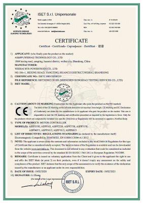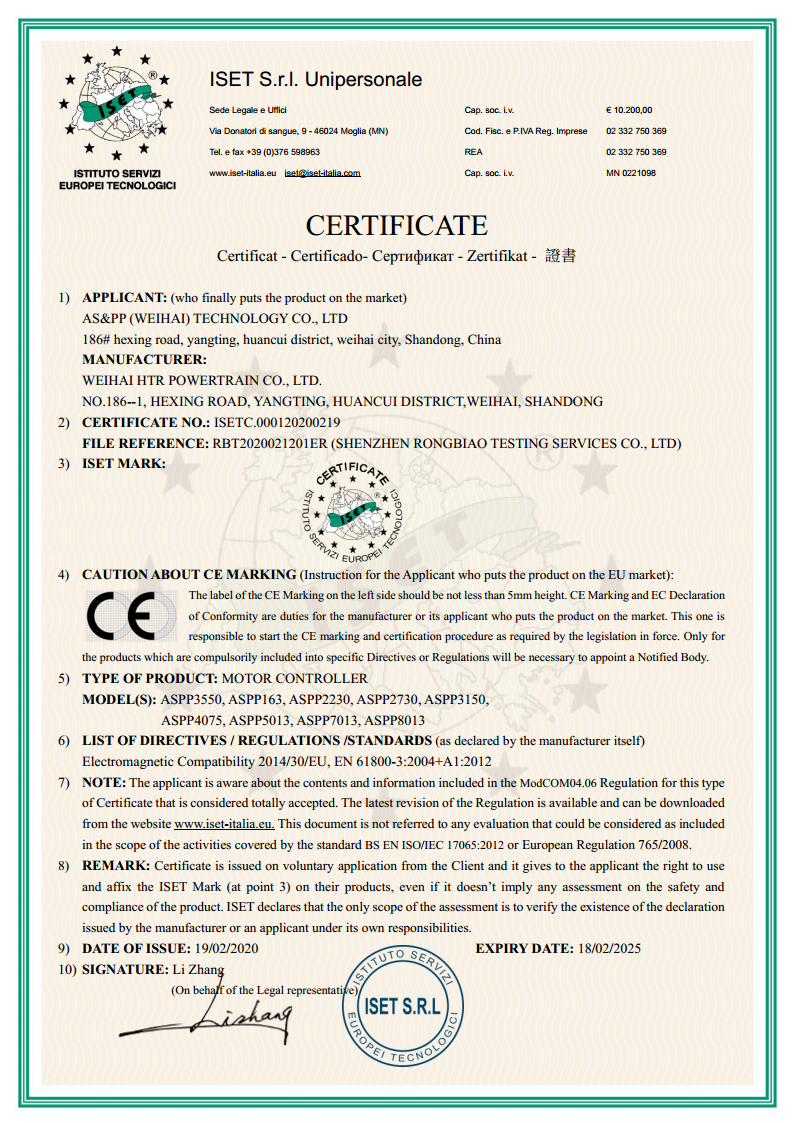 Ну а также все наши контроллеры, как и все моторы, теперь имеют Европейский сертификат. Сейчас также идёт работа по получению Российского сертификата