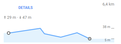 Выбрал самую "плоскую" если так можно назвать дорогу, она чуть длиннее на 500 м, но за-то на два подъёма меньше.