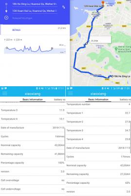 Сегодня решил побить скоростные режимы обычных дней и газовал как с перекрёстков так и между ними. Максимум по GPS было до 82 км/ч в среднем получилось чуть больше 50 км/ч Растояние 21,4 км время в пути 25 минут. Расход по бмс составил 37,62 Ач-24,09 Ач= 13,53 Ач или 57% от всей батареи, полный заряд показывает всего 90%. Тоесть 33% от всей батареи.