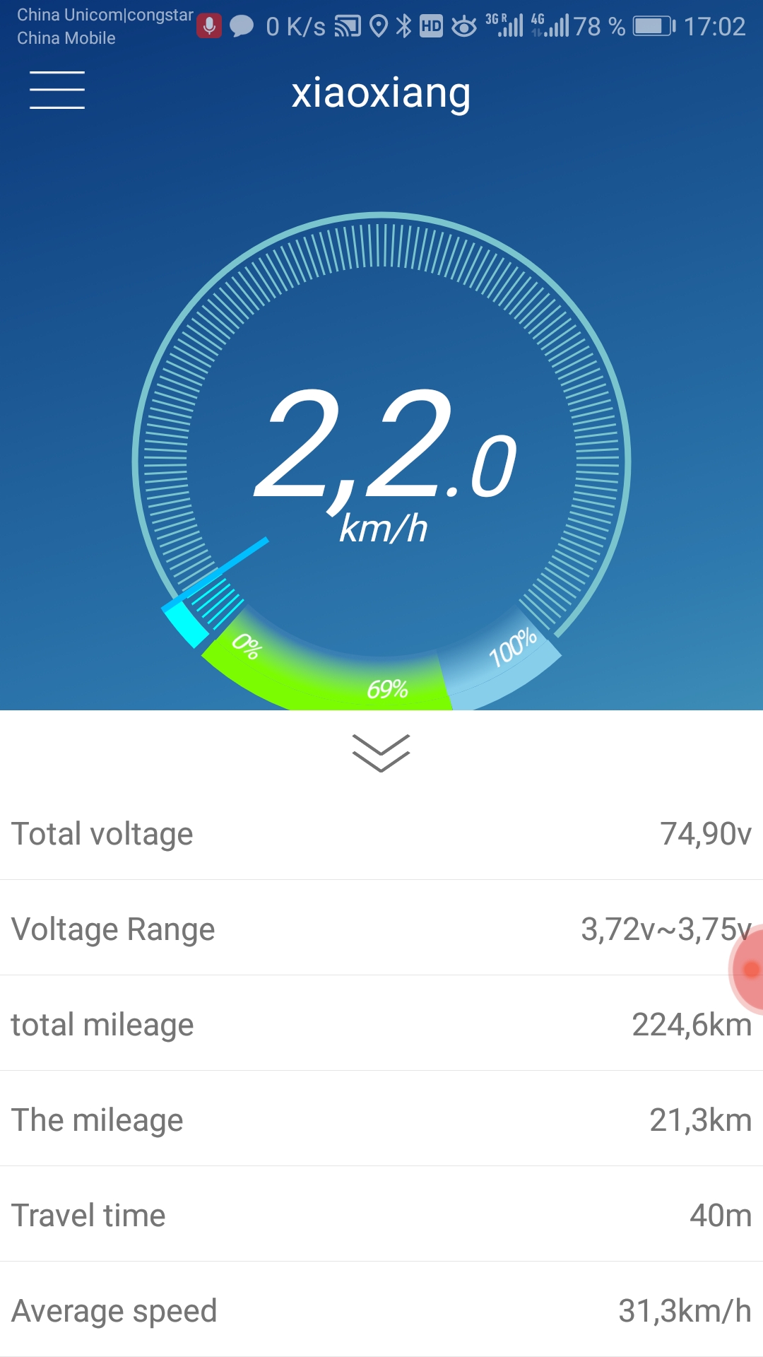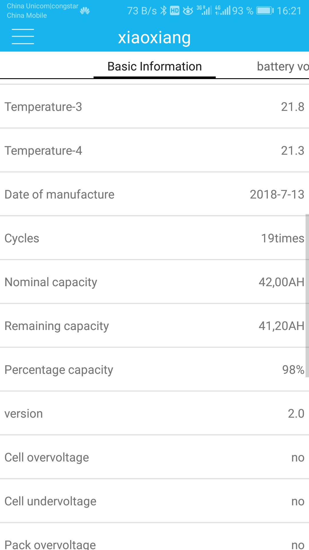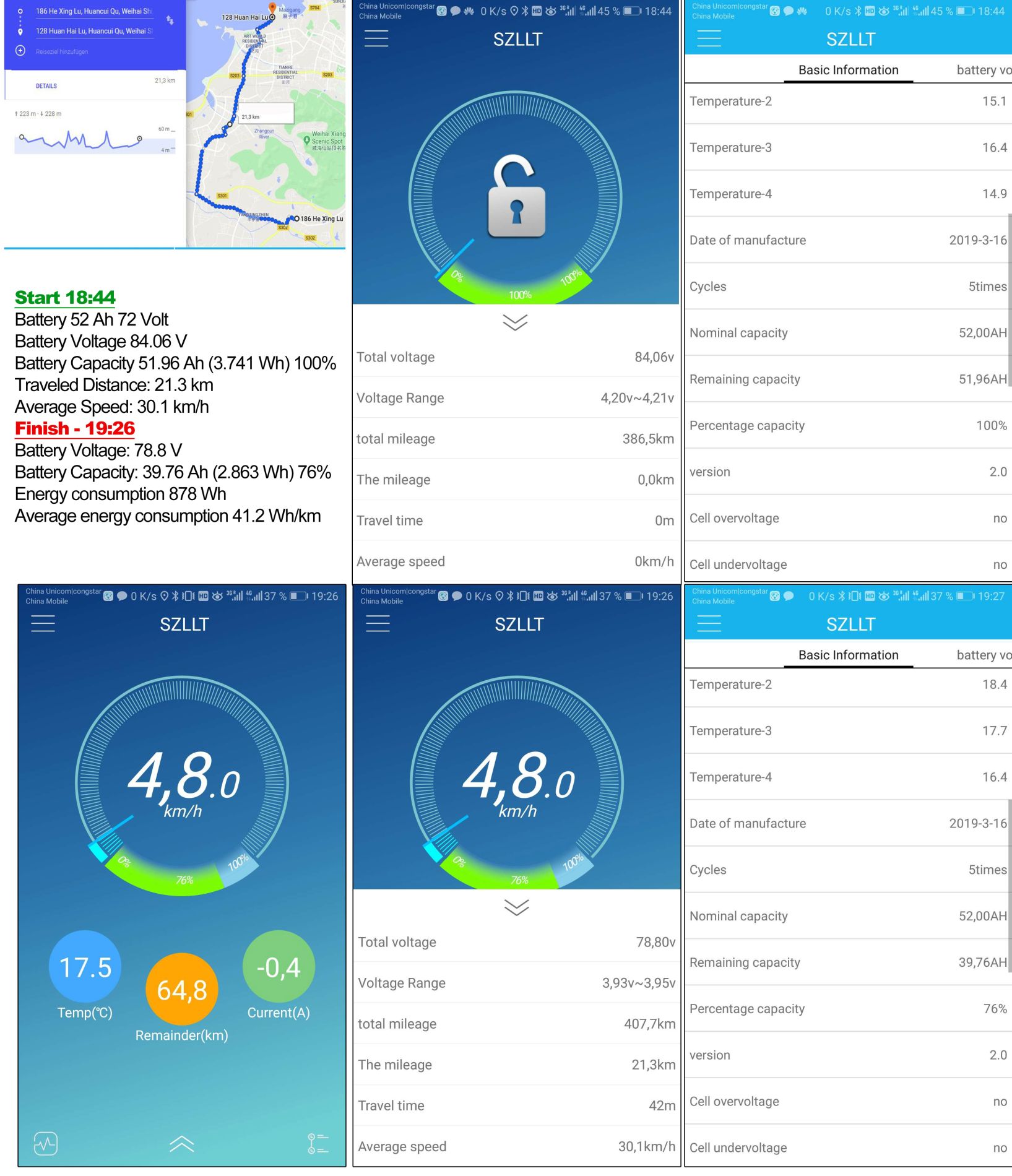 Это показания ячеек и софтвера БМС после поездки 21,3 км.