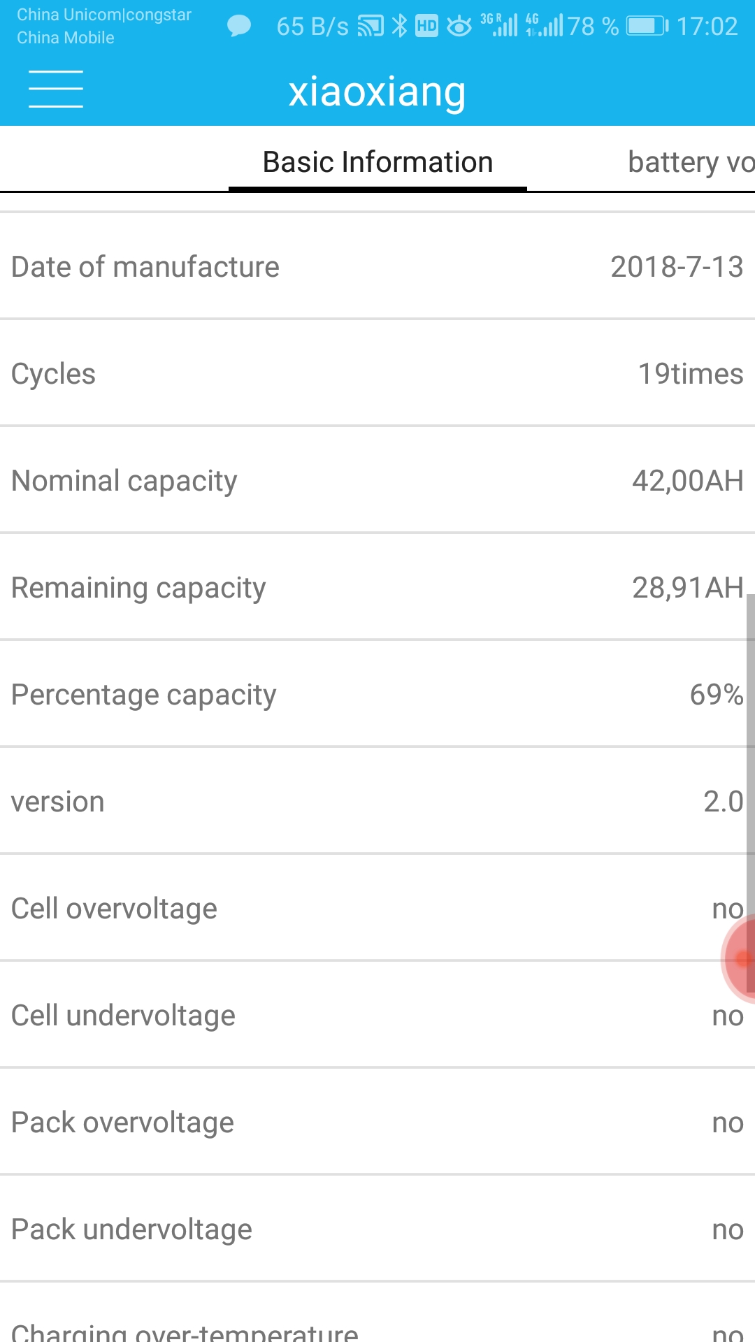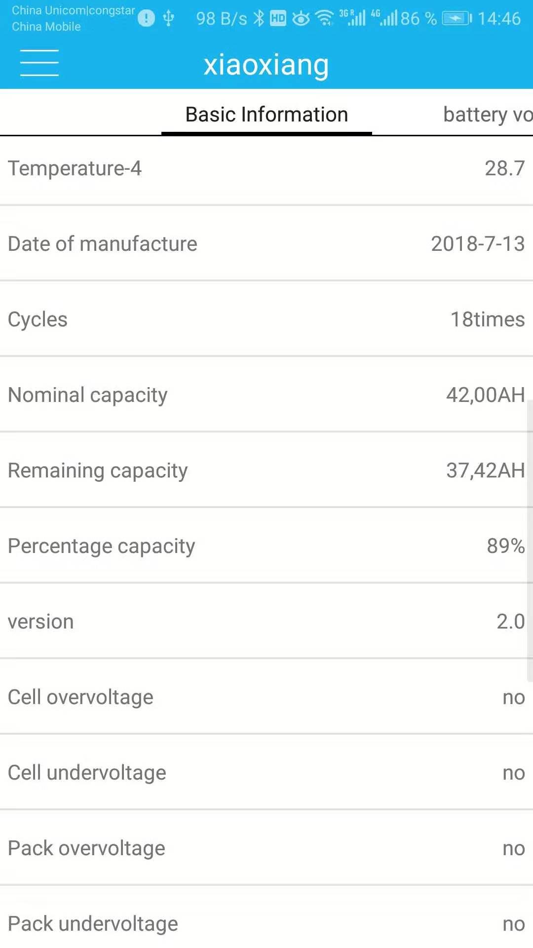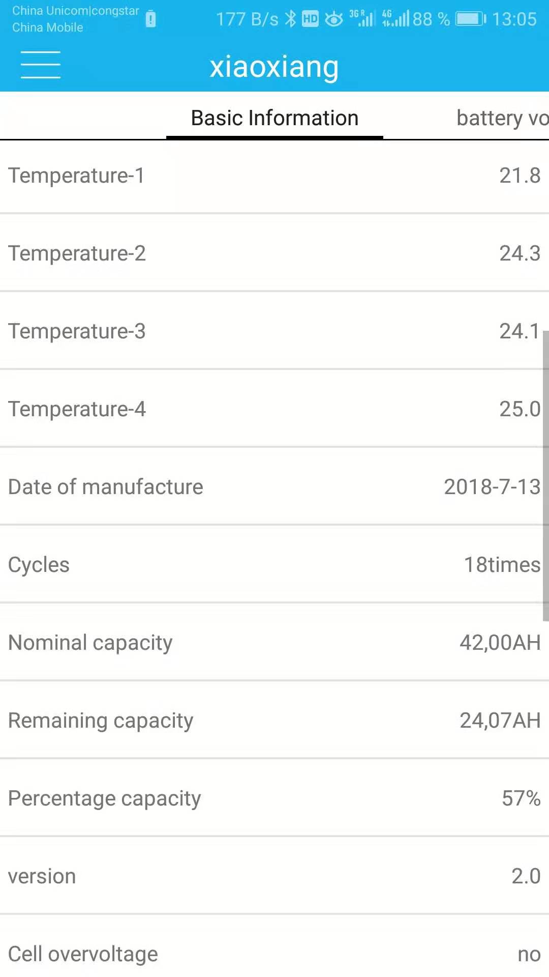 Это показания ячеек и софтвера БМС после поездки 21,3 км.