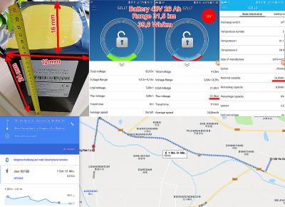 Пробег составил 31,5 км до полного отключения контроллера по защите. Выставлено 39В. Но отключение произошло уже при 41 в. Возможно просадка на отдельных ячейках была ниже. БМС показали в конце разницу в 0,3 В и общий вольтаж 41 В.
