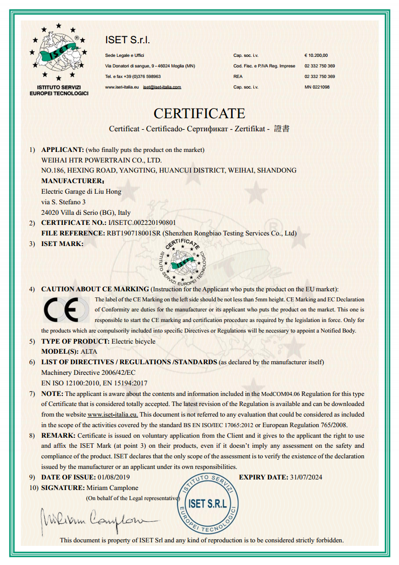 Кстати, электробайки раньше называемые Альта, сертифицированы нами для АСПП Монако и Франции, сейчас и другие компании подключаются. Получен СЕ сертификат.