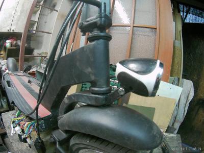 Донор "гуся"- передняя часть детского велосипеда, и железяка от родного гуся. Узел складывания изготовлен под крепление родной, немного укороченной рулевой стойки.