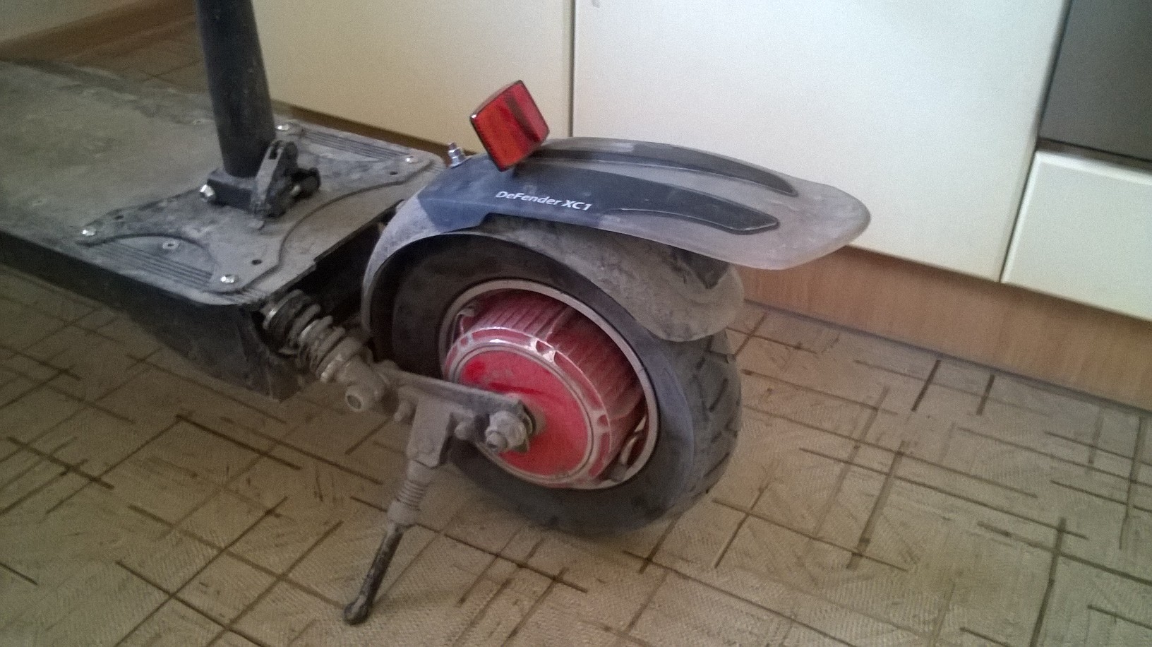 В качестве основы для такой накладки можно поспрашивать в велосервисах ломаные широкие крылья, а можно и купить новое в веломагазине. Уж самокатчик, выложивший за свое средство передвижения 60-70 тыс, может дополнительно заплатить 500-1000 руб. Наверное.