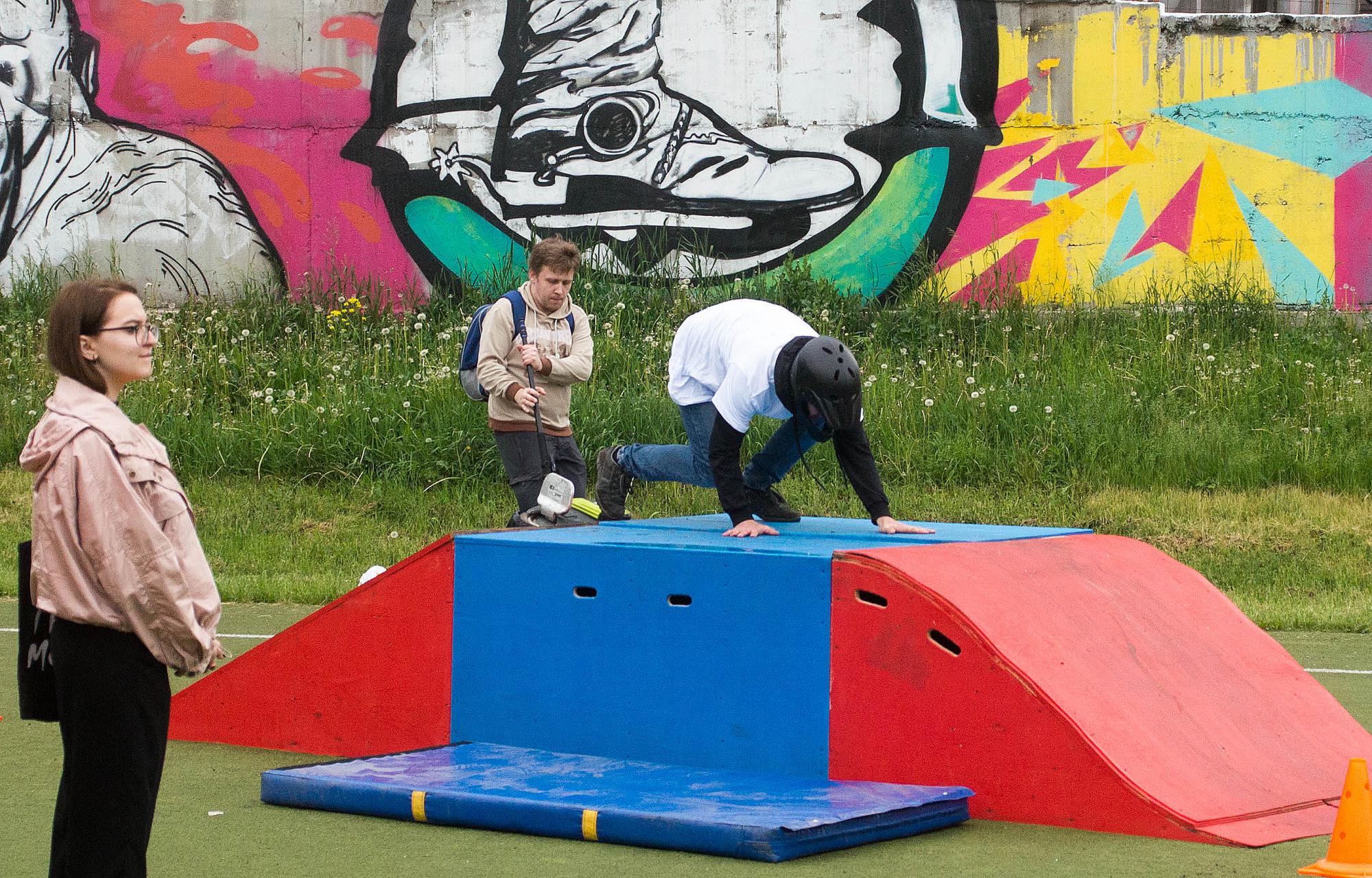 Дождь почти не мешал, даже когда шел. С мокрыми горками было сложнее, не знаю чем все закончилось. Я отбил себе все, что можно пока понял, что в мокрую гору въехать не смогу. Кто-то сильно поломал колесо. Но в целом народ собрался в хорошем составе, было людей достаточно и уровень катания хорош.