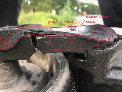 Пластину из стали наложить сверху, а с той стороны найти места под болты чтоб пружине и прочему не мешало(там есть варианты). Часть рычага которая к колесу выбросить. Хватит покататься. В идеале все рычаги из стали мутить, они слабые. Либо на чпу из Д16Т где то резануть, будет и красиво и прочно. В общем там у себя поищите железный цех - сварщика, необременных заказами.