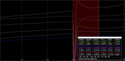 1) в тот же временной масштаб попасть сложно, т.к. не прикрутил настройки временнОго масштаба, сейчас мышкой выделяю интересующий кусок графика (получается окошко), прога растягивает его на весь экран по выделенному времени и по напряжению.