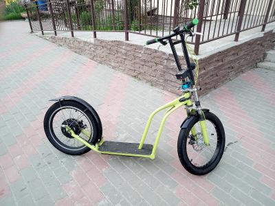 В этом вы правы, лёгкий в моём понимании,  вес у него как раз 20 кг и получился, но в сравнении с горным самокатом, который весит 35 кг, для меня этот лёгкий, поднять по ступеням или перекинуть через высокий бордюр вообще не проблема.