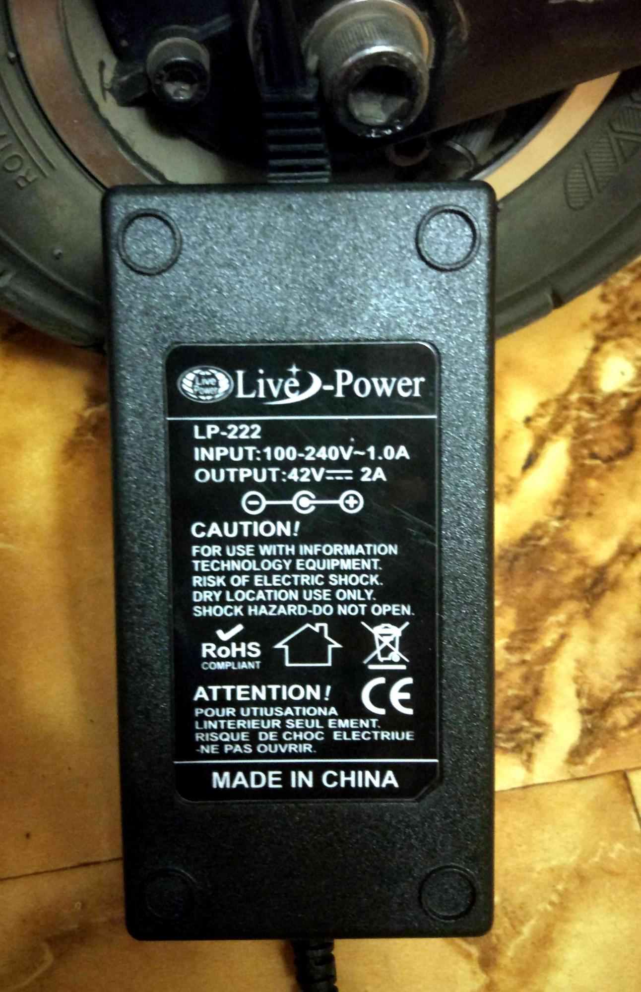 Заявлено 42в 2А, выдает только 0,55А, при холостом 43,1в. Цена чуть выше 500 р. А сейчас пришлось купить LP222 для доп. АКБ в магазине за 790р, тоже 42в 2А: