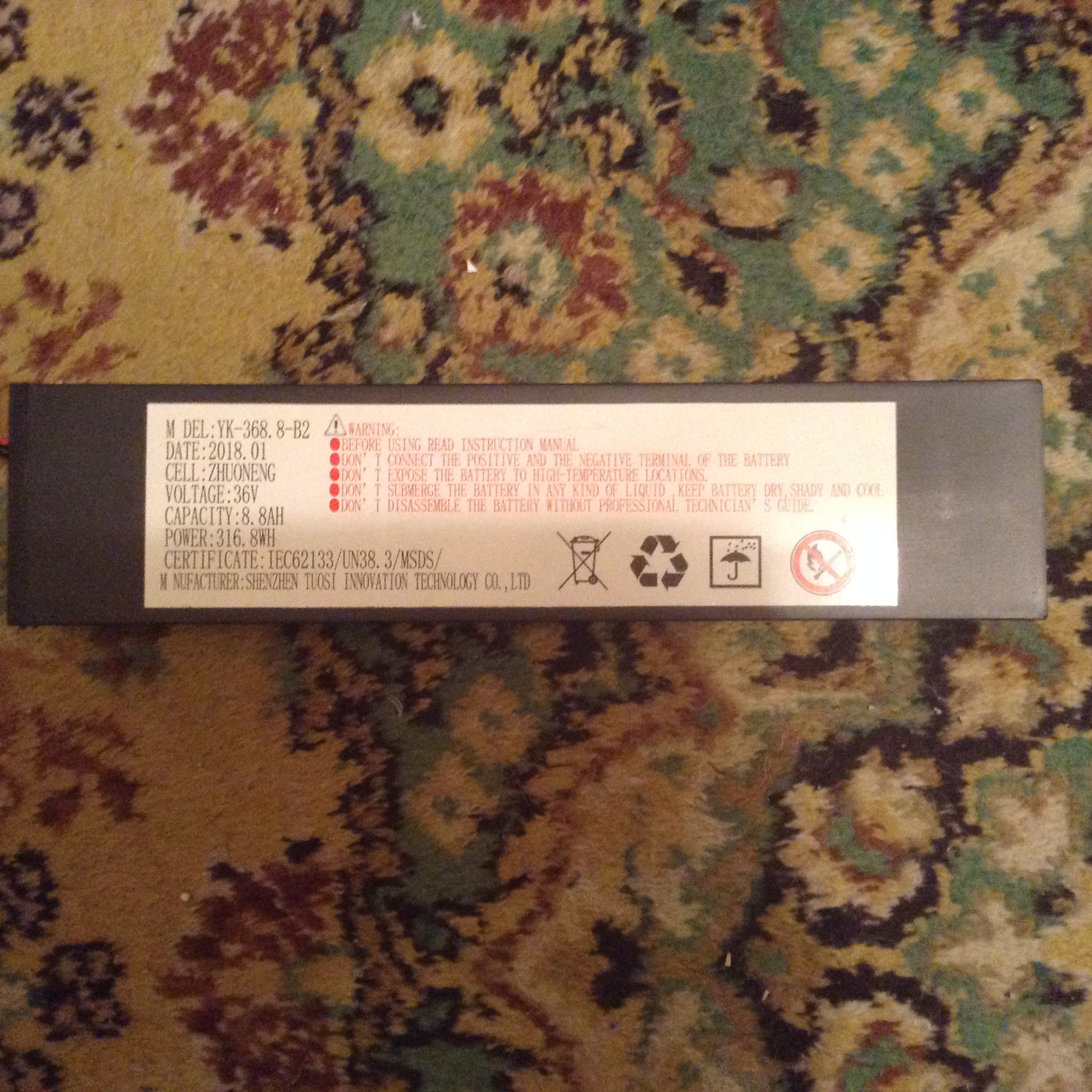 Вот такая батарея. Были еще синие в термоусадке,но у меня сейчас в самокате черненькая в пластике точно как эта, и сколько самокат с ней ездит меня устраивает :-) 4900 стОит