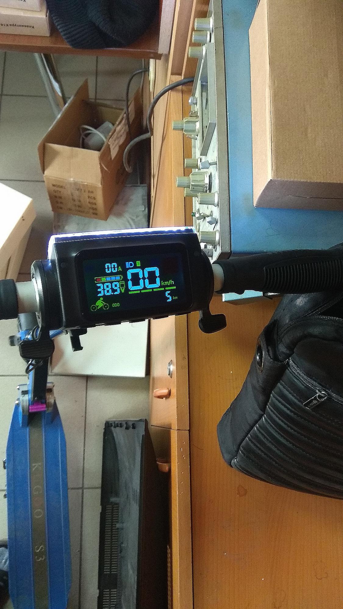 Особо отмечу, что пришедший самокат был заряжен до 40,5 вольт, то есть почти полный, все настройки были выставлены верно, никаких 10" колес и 20 магнитов, скорость ХХ на не совсем полном заряде составляет 43 кмч. Скорость реальную пока не замерял, ибо в планах сначала его перебрать и загерметить, а потом уже кататься.