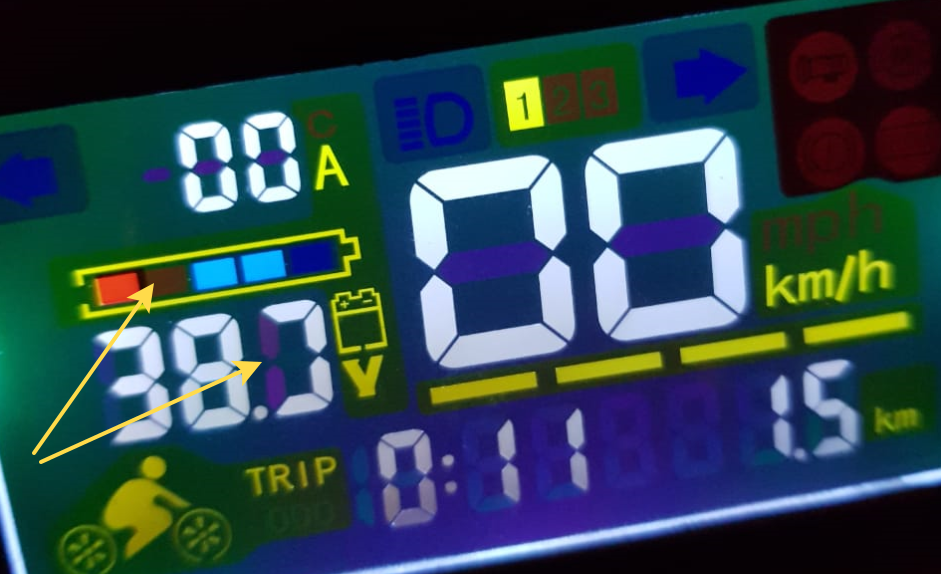 На одном из самокатов дисплей не отображает часть информации. Сверху не видно, а под углом видно.