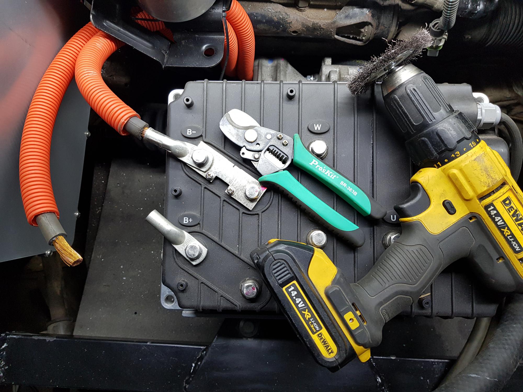 Установил на места зарядное, насос ГУР, мотор и контроллер: