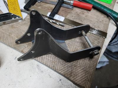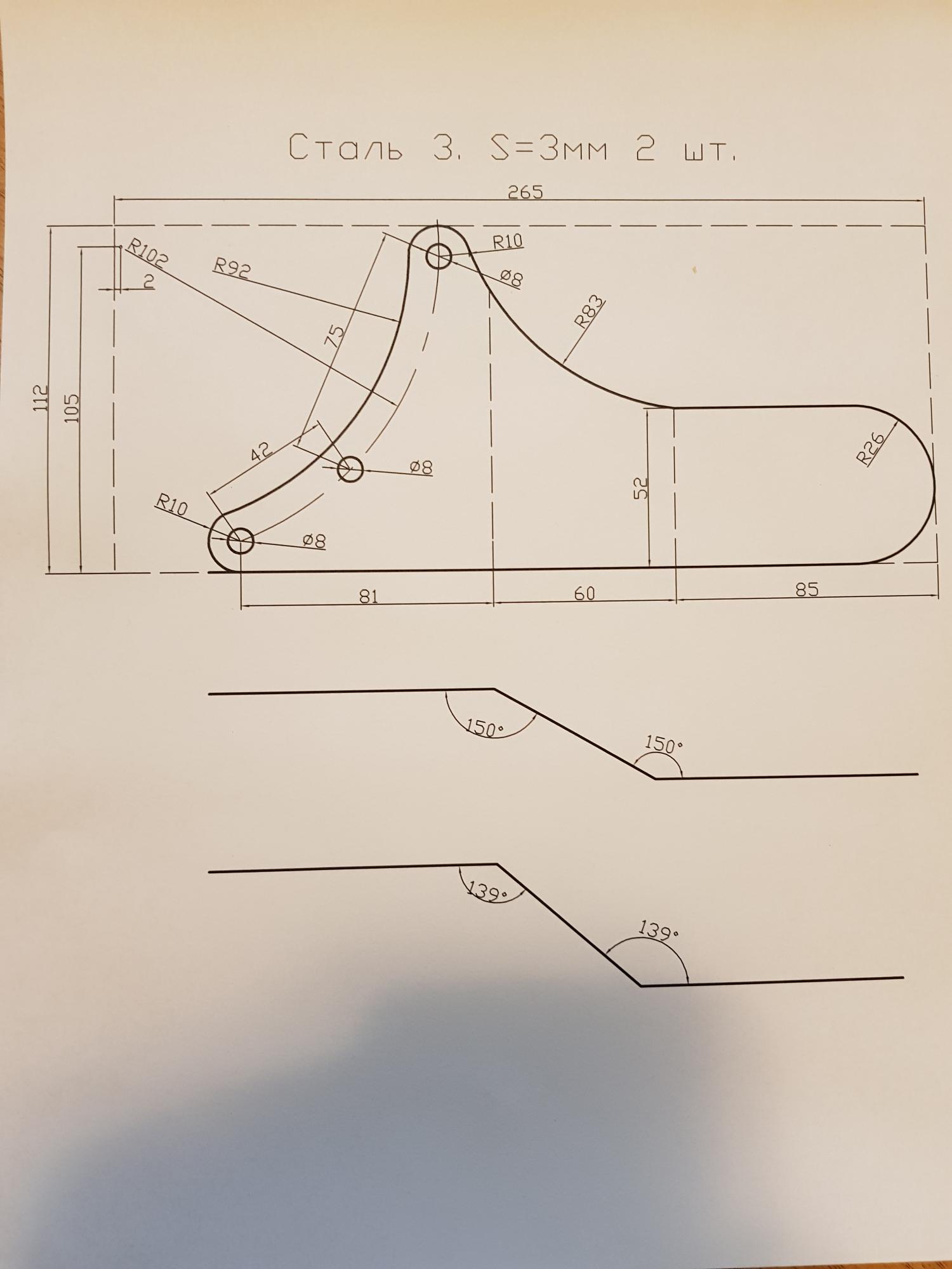 Фото заднего кронштейна на мотор и его чертеж. На фото он пока без верхней части которая замыкает кронштейн в короб чтобы он не сложился от крутящего момента. По сути это аналог родного кронштейна который был на КПП бензомотора только адаптированный под электромотор :