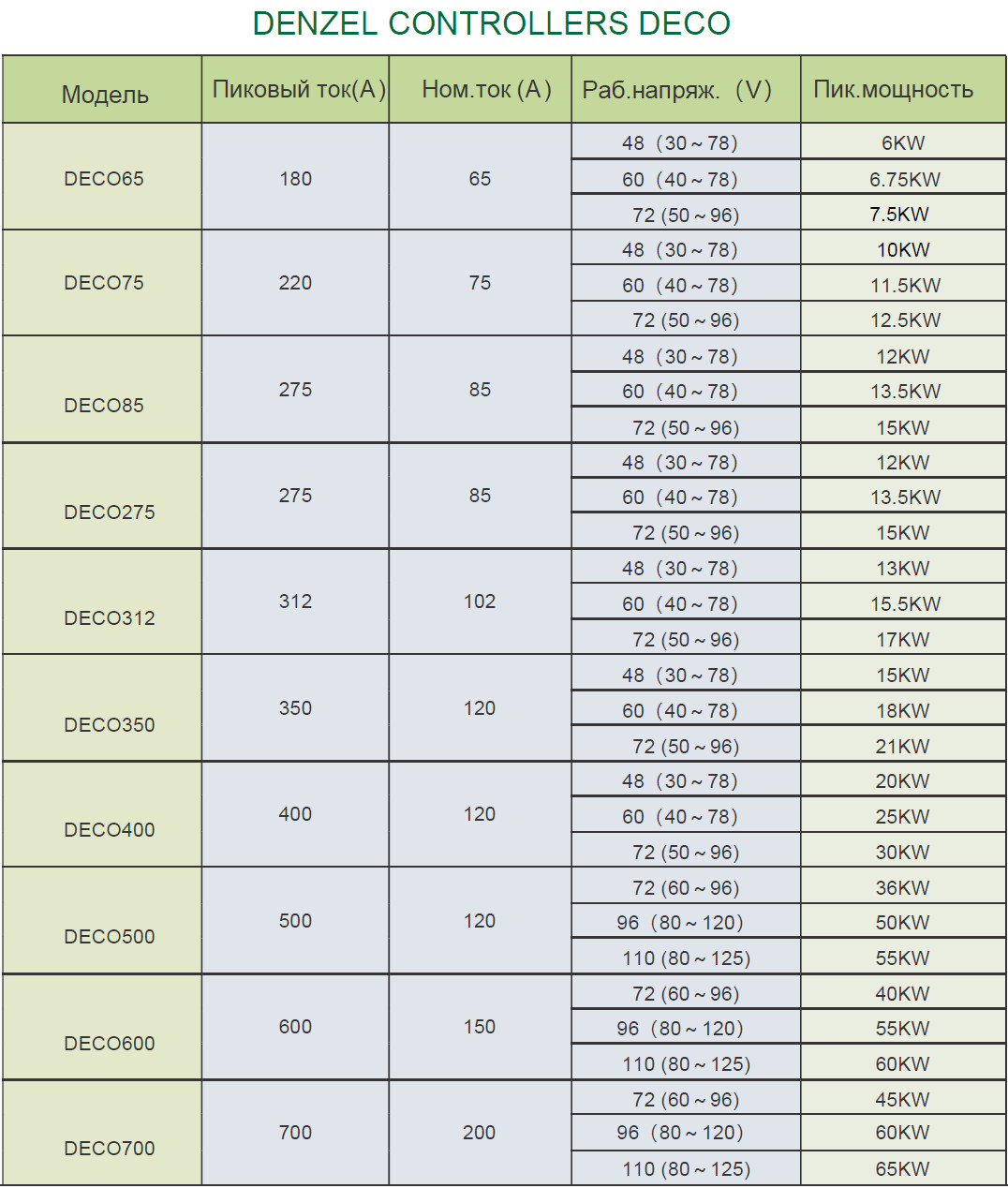 Контроллеры DENZEL DECO для асинхронных двигателей включая двигатели с комбинированной обмоткой, а также контроллеры для BLDC двигателей.