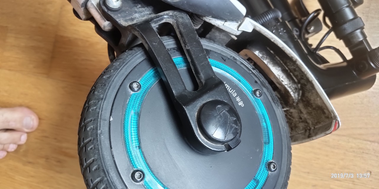 Я сегодня свой забрал: колесо выровняли, накладку на деку приклеили и дополнительно залили компаундом провода и светодиоды под крылом. Про пружину сказали, что не заметили касания, пока катали его во дворе. Потертости так же замечены не были, правда там максимальный вес драйвера был 90кг,  а человек, который будет кататься, сейчас вряд ли весит больше 50кг. Единственный посторонний след, оставшийся на покрышке - от торможения крылом.