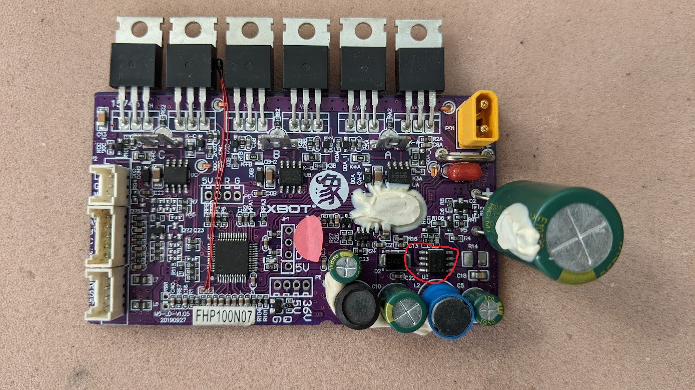 Вечер добрый, восстанавливаю mi essential утопленный моим братом.По его легенде - потух он на зарядке. В результате окислов некисло пыхнула плата бмс прогорев под разьемом подключения шлейфа.из 20 ячеек остались живы только 10 (. Поначалу разминался с бмской и вроде даже заставил ее работать (синенький блымает раз в секунду), вместо банок - делитель напряжения из 10 резюков. Источник питания - родная зарядка. А вот контроллер бастует - ошибка 24 и все тут. Визуально ничего не унесло, кроме одного транзистора, управляющего задним ледом, причем пробило его не со стороны шнура идущего к бмс, а переход база - эмитер , что странно. Питаю контроллер (версия 3.0) от родного зарядника (ну есть еще гирлянда из трех упсовых акб).К бмс, как я понял, ошибка 24 отношения не имеет. Запускается с родной платы управления, сикунд 20 пропискивает ошибку и высвечивает ее на экране и тухнет. к м365 тулс подключится за это время не проблема . Если отсоединить разьем датчиков холла бьет ошибку 18 (я так понял вываливает он их последовательно по одной за сеанс ))Выяснилось - оказалась подуставшей TLV74333PDBVR (стабилизатор 3.3) которая давала 2.9в. вместо положенных 3.3.Поначалу значения просадке не придал (включался же), но как оказалось - тоже влияет. Самокат наконец включился без ошибок. Ковыряю дальше. На данный момент колесо запускается на небольшой скорости (до 5 км в час)с треском. Тяги почти нет, останавливается рукой. Датчики холла при повороте колеса поочередно показывают 3.6 вольт (да и на исправном контроллере колесо нормально работало). Мосфеты вроде целые, пробоя точно нет. на лезвиях подключения к мотору, относительно земли при отключенных обмотках колеса в состоянии покоя  фаза -       a -  b -  c  - все по 0.33 в. Обвязку стм с 13 по 32 ногу прощупал - без аномалий. Неакуратной соплей были закорочены ноги 14, 15. После того как убрал, ничего не изменилось.