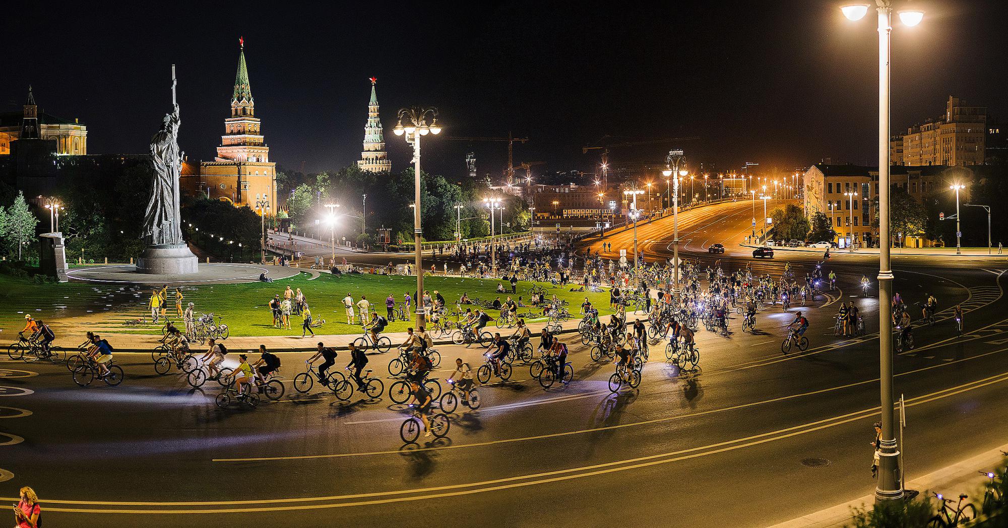 Участники ночного велопарада стартуют в 23:00 с Суворовской площади. Протяженность маршрута составит 20 километров. Финишируют велосипедисты на Болотной площади.