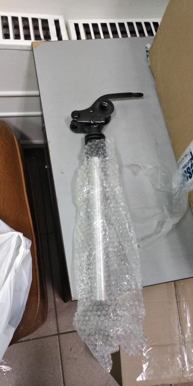 Из-за тормозных тросиков руль нельзя сложить совсем, складывается где - то по ширине дэки и этого вполне достаточно. Руль будет чуть повыше, чем первый вариант и так же доступна регулировка наклона