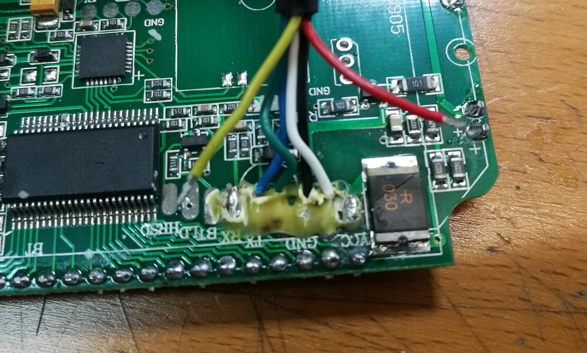 Имеем 2 оторвавшихся провода: плюсовой и желтый (RX).