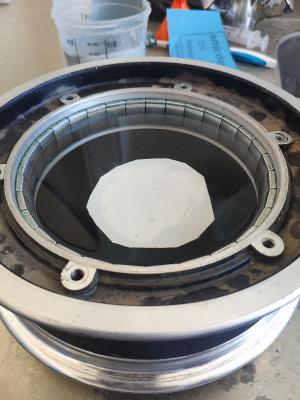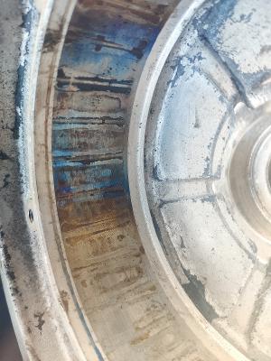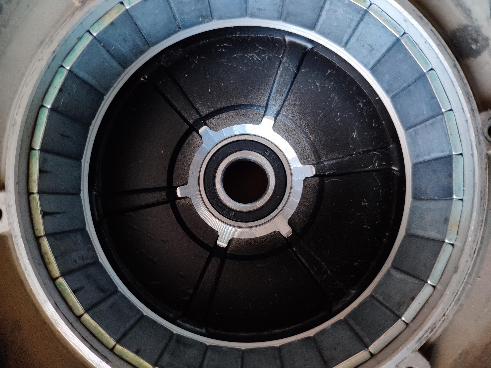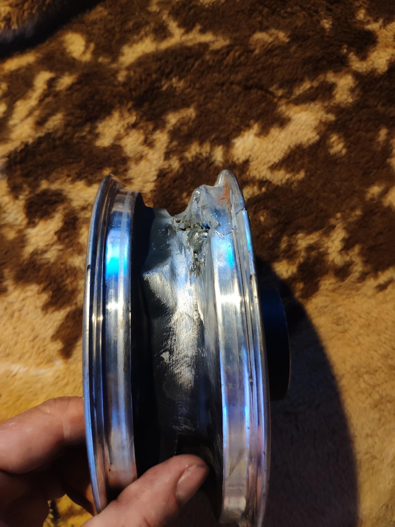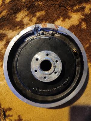 Решил попрыгать через паребрики на скорости, чето как то не очень получилось, погнуло диск, вышел воздух (бескамерка), снял колесо, разобрал, вынул статор, отвез на шиномонтаж, там постучали киянками с фторопластовыми наконечниками. Почти удалось выправить но в последний момент таки лопнуло. Греть было нельзя т.к. магниты. Дальше токль сварка в аргоне. Залил дихлометаном на сутки, отколупал магниты, отдал на сварку, там доломали окончательно. Новое мотор-колесо в сборе нашел только на Али за 13т.р. ну и ждать.