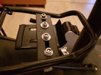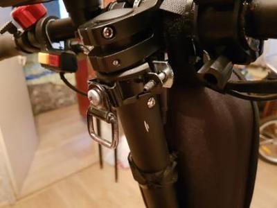Хотел сделать ещё одну точку крепежа, но опробовав на жёсткость решил, что вполне достаточно. Смело поднимаю за багажник весь самокат.