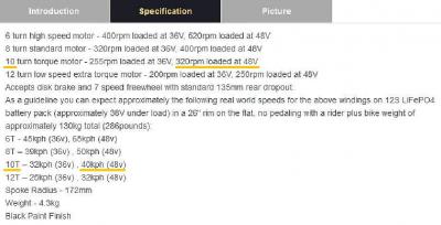 Так, например, если производителем имеется ввиду именно полное колесо в сборе, то тогда нужен какой-то стандарт веса и диаметра - один и тот же движок можно превратить в чуть ли не в мотоциклетное колесо на 26" со спицами диаметром 4mm и кило-полутора килограммовым даунхильным ободом, который даже в воздухе педалями вращать не только затруднительно, но и больше 2\3 от максимально возможного, а то и половины об\мин разогнать даже не получится (можете сами попробовать). А другой напротив это же мотор-колесо соберёт с невесомыми 2-х mm спицами и 0,5кг-ободом от DTSwiss (например, с 545D). Разница между этими двумя колёсами одинакового диаметра 26" будет настолько большая, что ни о каких стандартах ХХ с колесом в сборе речи даже близко быть не может, и не только если брать маломощные движки на 250Wa, но и на 1kWa........10kWa и т.д., на сколько хотите kWa - с одной сборкой будет один показатель XX, а с другой сборкой совершенно другой. Поэтому можно подозревать о том, что XX это когда речь идёт не о вывешенном в воздухе собранном колесе, а о голом моторе