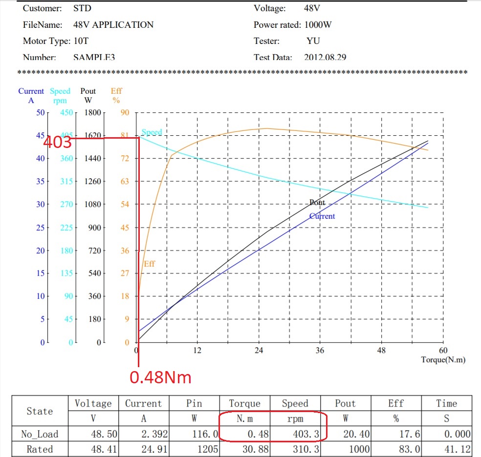 Как видим ХХ у МАСа 403рпм (No_Load) причем вкачивается более 100Вт и момент сопротивления вращению 0,48Нм.