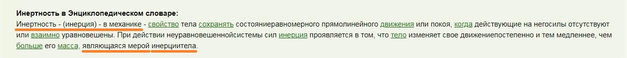 Вот ваша вырезка про инертность, которую попробуйте сравнить с определением об инерции: