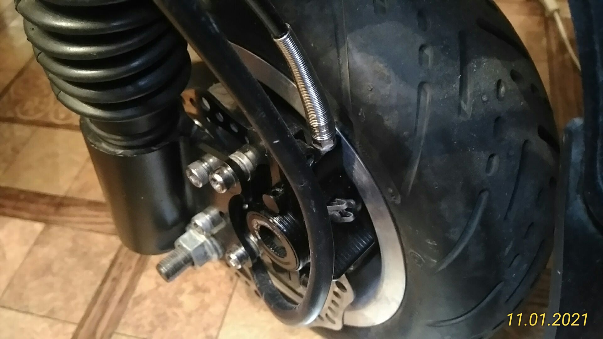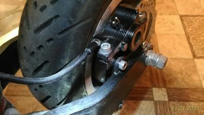 [user]Александр61[/user], впереди убрать шайбы между скобой калипера и дропом и поставить проставку под диск.