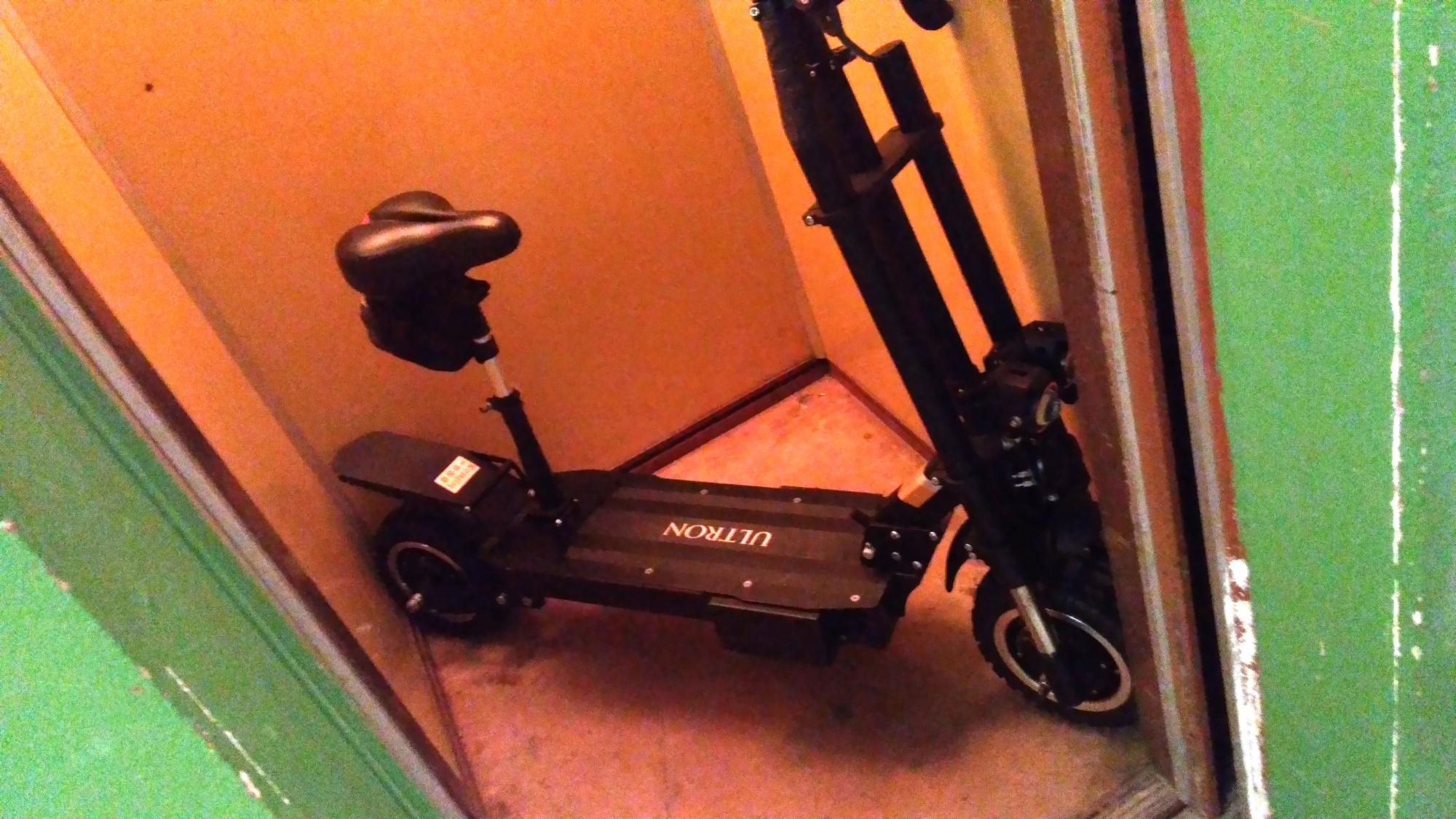 А я за жопу беру в сложенном состоянии, спиной захожу в лифт, жму передний тормоз и этаж. Можно в двоем ехать. Лифт панельной девятиэтажки)))
