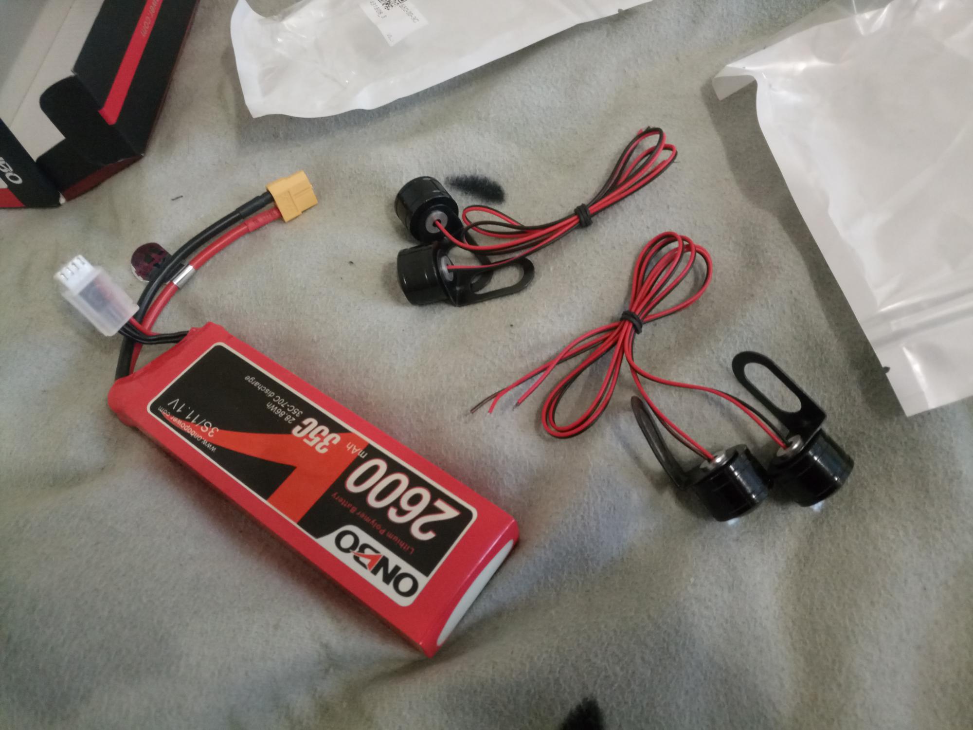 начали прибывать ништяки потихоньку.... BMS  и габаритки. Думал их последовательно воткнуть, попробовал на 7.2в и решил что надо поставить dcdc стаб. заказал. А то на заряж. батарее будет норм, а по мере проседания садится яркость, они без драйвера походу, просто на резисторах. Камера заднего колеса тоже пришла, насколько помню но дырявое. Остается привезти сам самокат, 6 числа за ним поеду, купил билеты. ММмммм наконец то ко мне в руки он попадет.