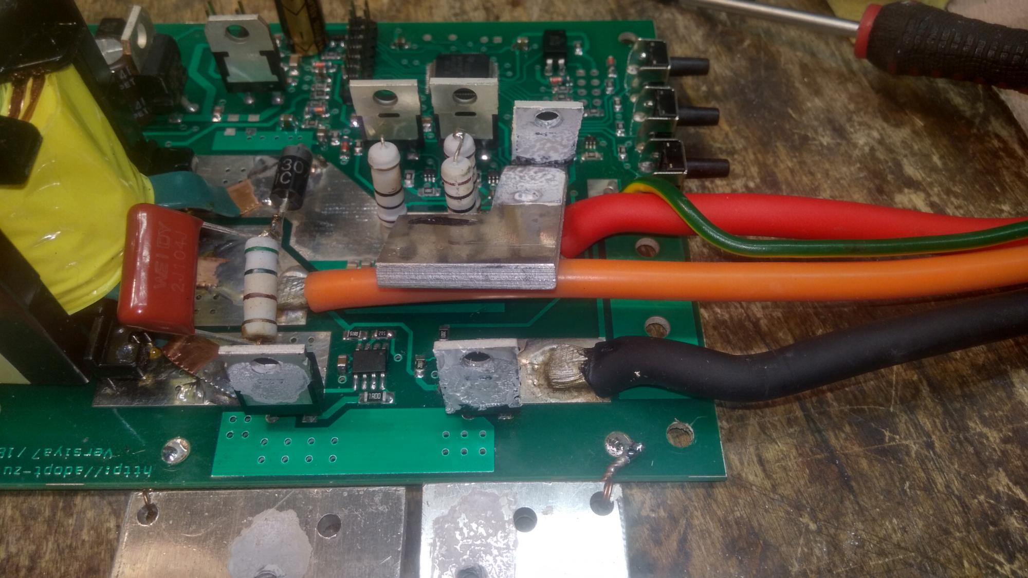 Также немного дополню ваши зарядки, другой корпус с доп вентилятором и увеличенные радиаторы. Обязательно заменю ваши детские провода на плоский, менее индуктивный провод сечением 25 мм2, без компромиссов, меньше при таких токах для эффективности нельзя без вариантов!. Длина 30 см мах. Меня интересует точки пайки этих проводов на плате, в точку старых или куда лучше ближе к трансу? В идеале хотел провод литцендрат 1мм2 в сборку 50 штук, но у нас такого нет. Из них можно сформировать ещё лучше безиндуктивный плоский провод.