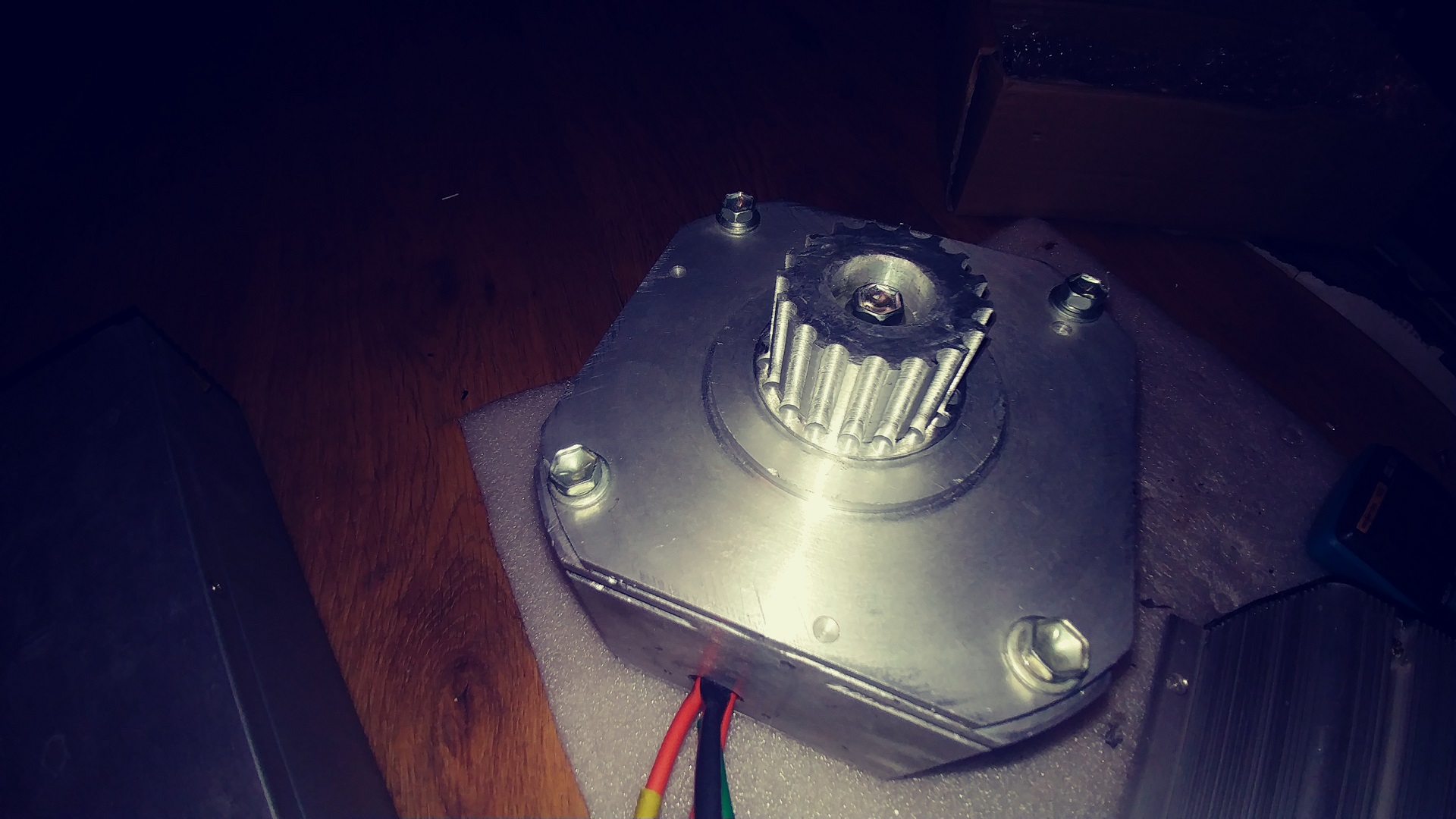 Мотор решил ставит как в предидущем проекте.Перемотал мотор и настроил холлы(вынес на торец вала кольцо с магнитами). https://www.youtube.com/watch?v=lfq1kAV0E-g&feature=youtu.be