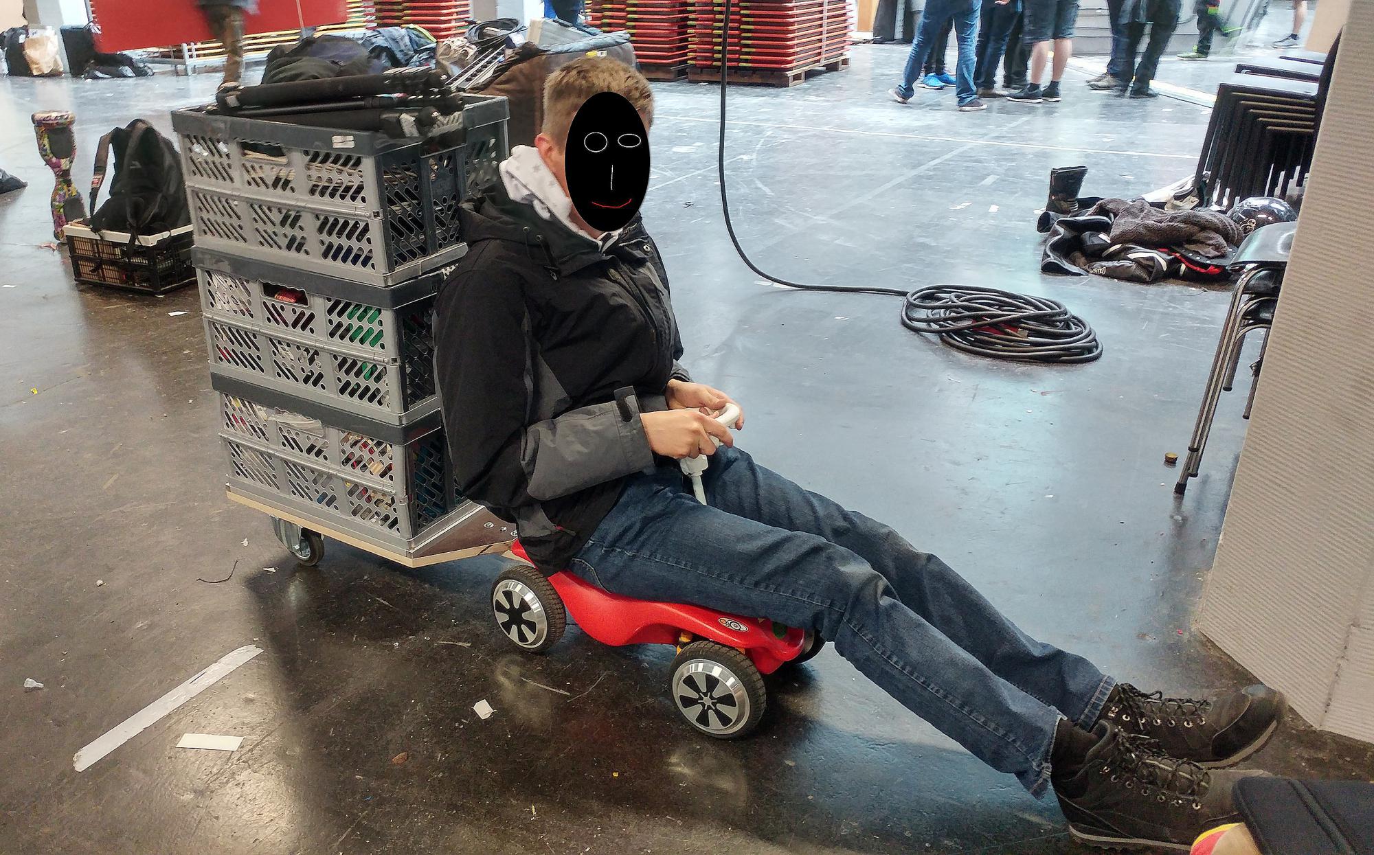 а я тоже заморочился тачку сделать, 30 кг тянет на ура но я аккум свой собрал 5 ампер 37 вольт. Управление ручкой газа считаю не приемлемой только гиродатчик.