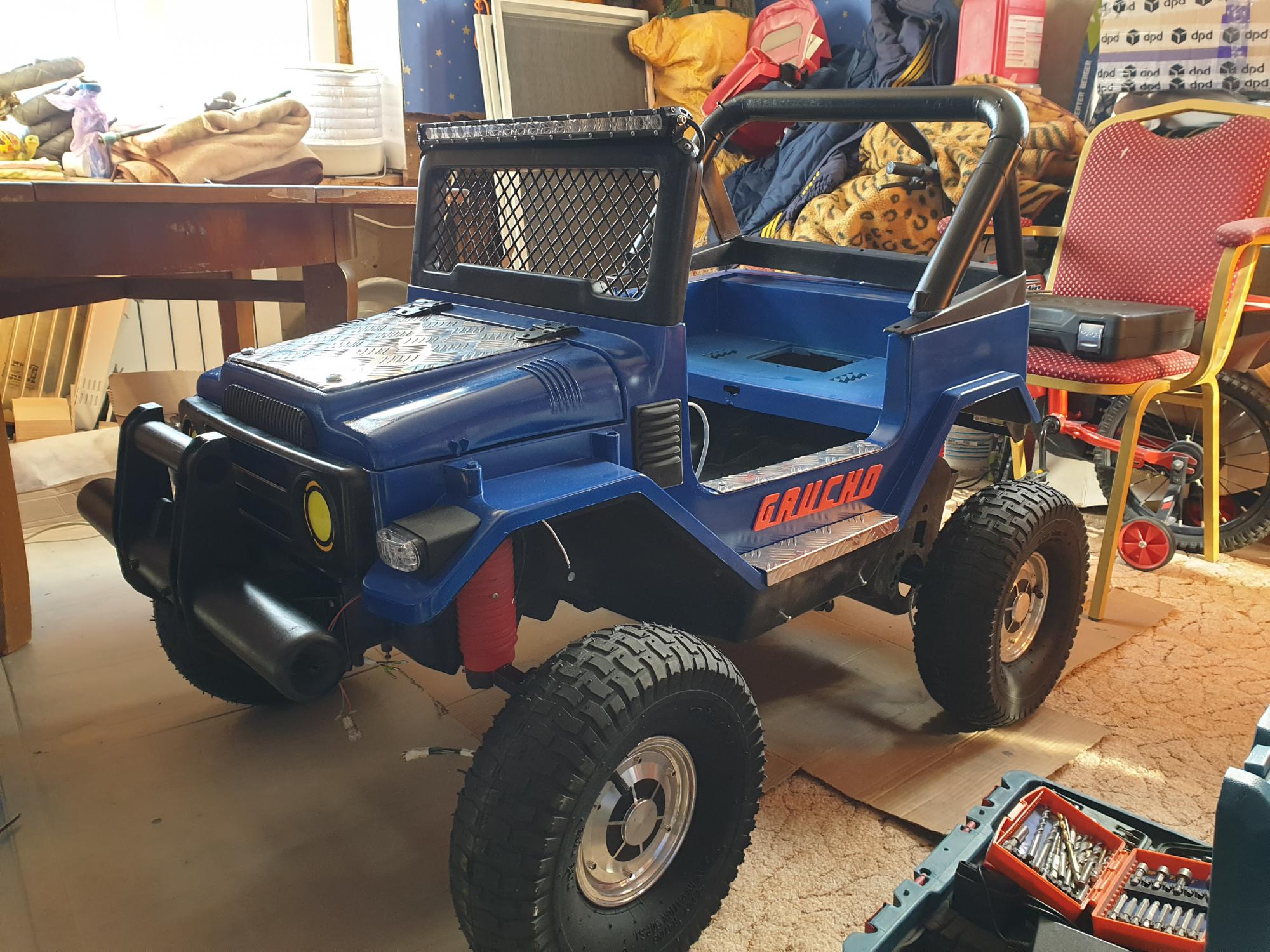 Я допилил контроллеры, вывел 50% и 110% мощности (ну и задний ход конечно) думаую для начала 50% будет самое то. А то водителю еще только 4года))