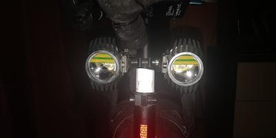 Вот блин, фигня полная получилась с фарой. Включал сегодня, когда поднимался по серпантину парковки. Во первых, если светить вдаль, всё равно слепит. Во вторых, из-за доп. веса фару стало трясти. Похоже надо просто покупать и ставить нормальную фару.