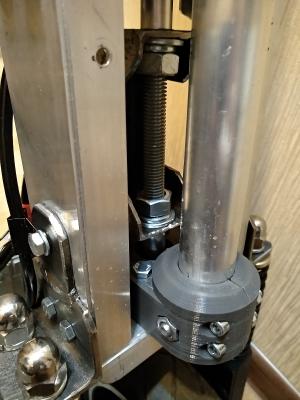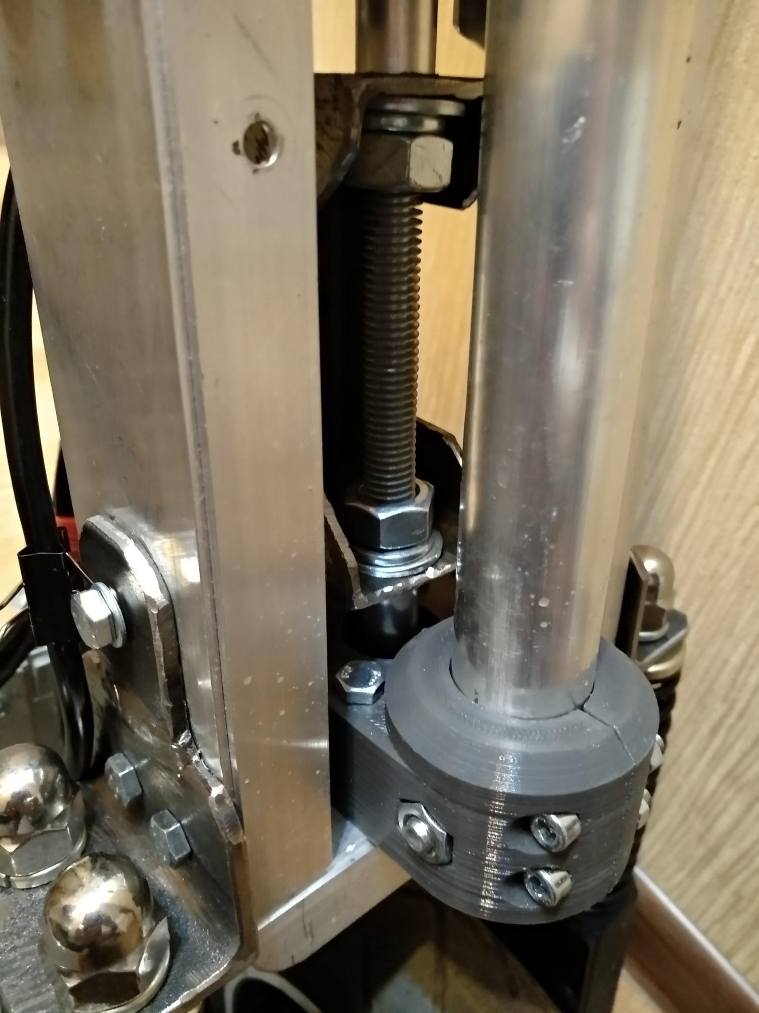 То, что используется шпилька - не страшно, но 35 витков резьбы 12х1,75 между гайками + длина двух гаек, говорит о том, что база колонки всего около 90 мм. Гайки не законтрены и размерная цепочка базы может измениться при повороте руля.
