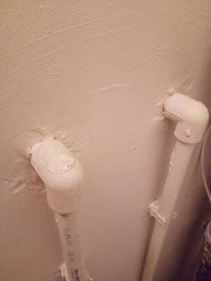 Предыдущие квартиросъёмщики повесили на них бочата и прикрутили новый кран.