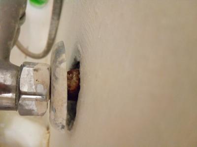 вот так прямо из стены торчит подржавевший огрызок трубы и на нем гайка, я не догадался сфоткать при снятом смесителе :( это гайка навинчена на смеситель, но если отвинтить то она останется болтаться на огрызке трубы...