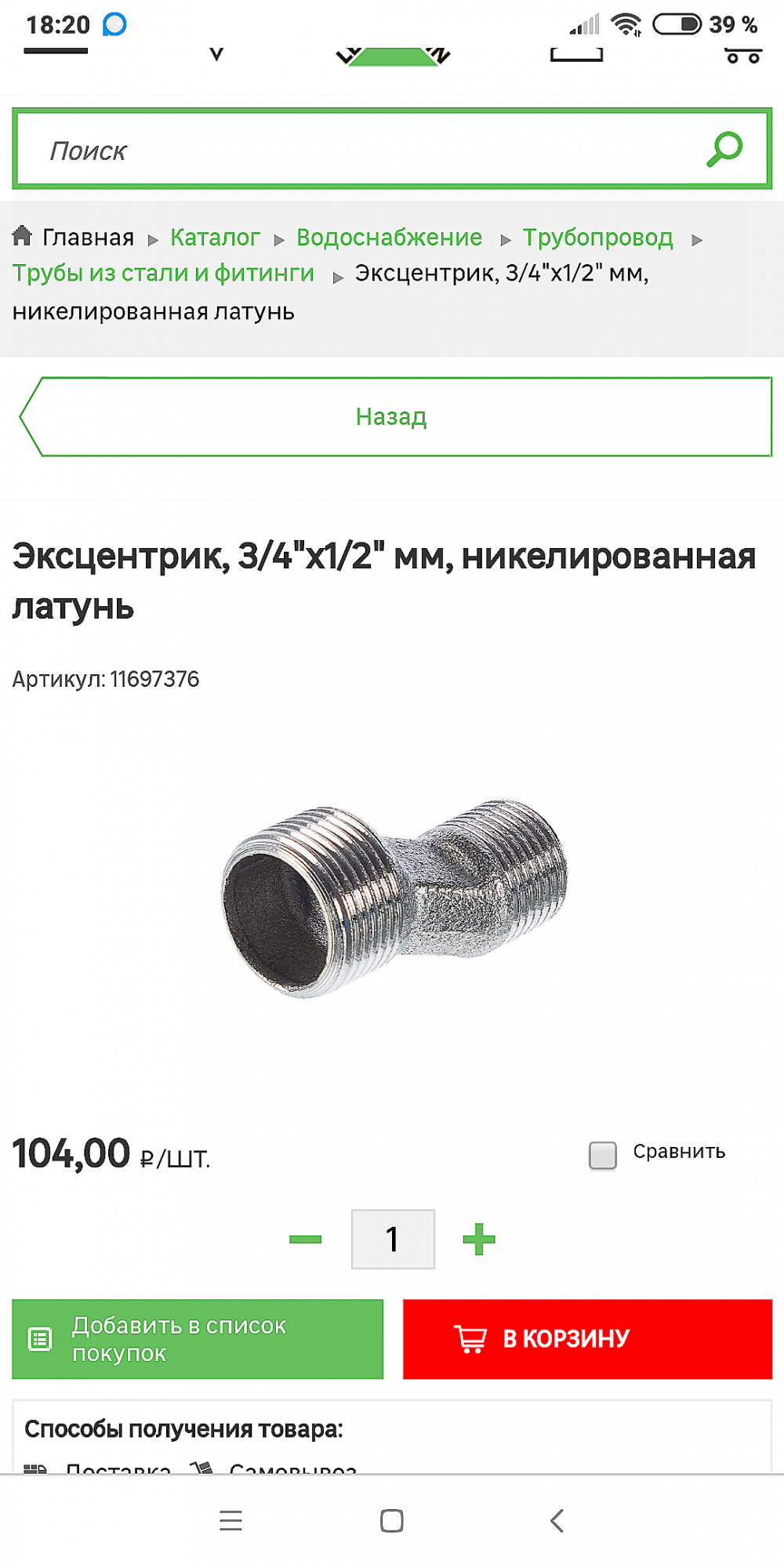 не ошибся, на эксцентрике (от нового смесителя) есть большая резьба и маленькая, большая это 3/4", маленькая это 1/2"