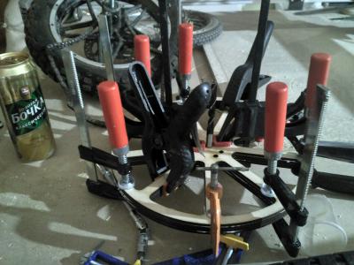 А почему колесья сразу из 15 фанеры не вырезать? Или там какие то особенности есть с ободами?