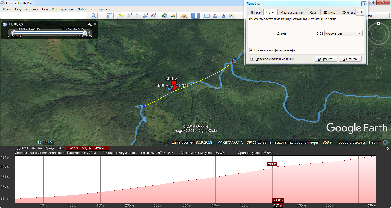 Гугл неточно дает максимальный уклон (это какие-то ступеньки в данных), лучше выделять мышкой участок, который кажется самым крутым, и брать средний уклон этого участка. Но действительно, оценка в 20% оказалась близкой к истине.